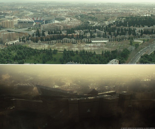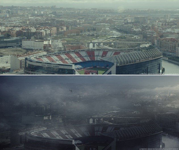 Raynault VFX. Виды Мадрида были достигнуты в 2.5D, так как основой служили фотографии. Далее мы добавили CG-автомобили и некоторые слои дыма, чтобы оживить его.