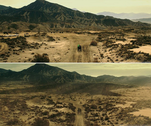 Повозка движется к обрыву (действие 4): для этого действия мы создали CG-скалу, используя программы Mudbox, Mari и Маya. Нужно было создать впечатление глубины, что вы действительно не переживёте падение. Модель скалы использовали не только для расширения испанской пустыни, снятой прямо на месте, но и для создания полноценной CG-сцены. Цифровые версии Ахмеда, Агилара и тюремной повозки так же потребовались для этой Последовательности.